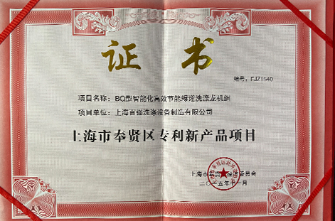 上海百強洗衣龍獲得上海市奉賢區專利新產品項目