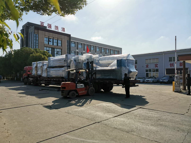 此次發(fā)貨北京的產(chǎn)品有:3臺(tái)100公斤洗脫機(jī)、2臺(tái)100公斤烘干機(jī)、1臺(tái)送布機(jī)、1臺(tái)燙平機(jī)、1臺(tái)折疊機(jī)。